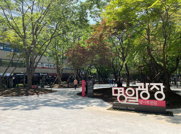 명일동은 도심 속 녹지 환경이 비교적 풍부한 지역입니다.