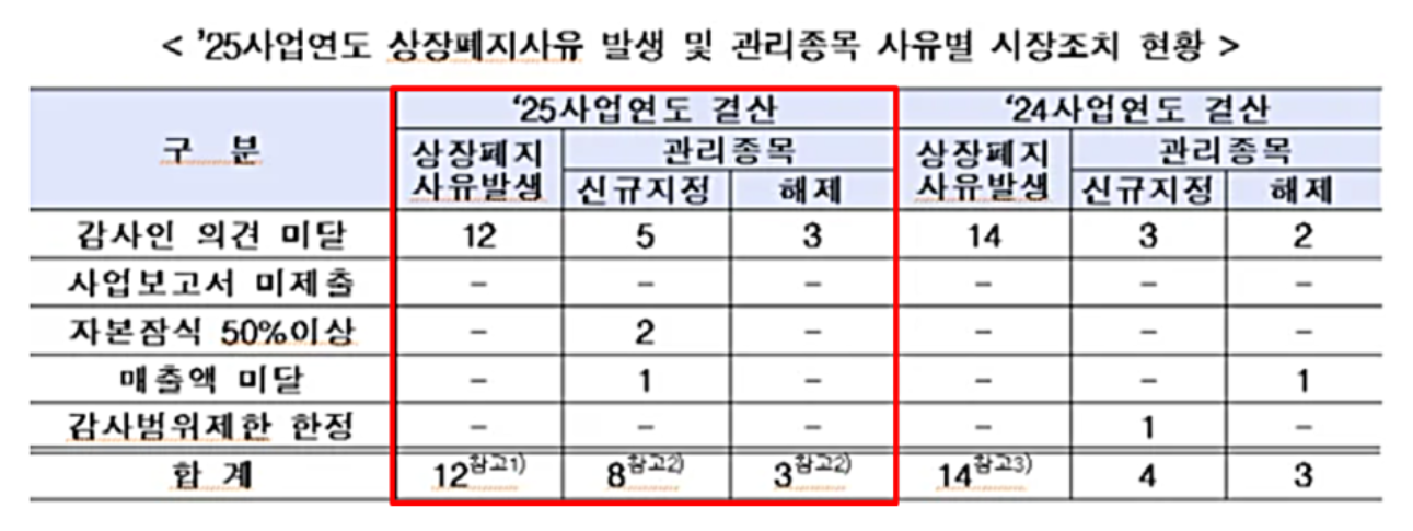 이번에도 신규 상폐 사유 발생 기업이 대거 등장하며 위험이 확대되었습니다.