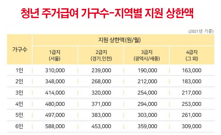 | 지원 방식 | 가구 기준 임대료 | 청년 1인 기준 임대료 |